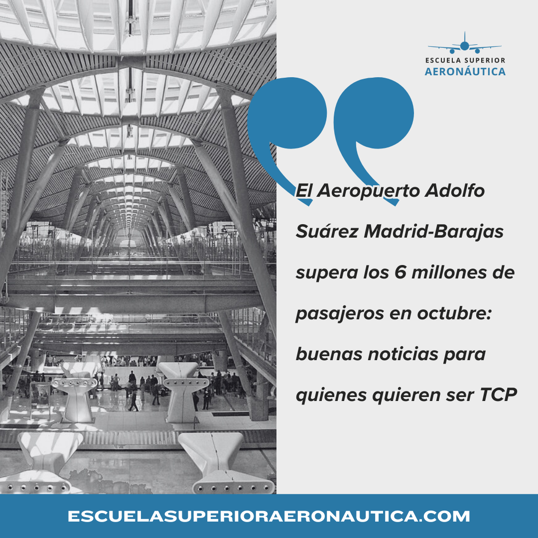 17 noviembre, 2025El Aeropuerto Adolfo Suárez Madrid-Barajas supera los 6 millones de pasajeros en octubre: buenas noticias para quienes quieren ser TCP